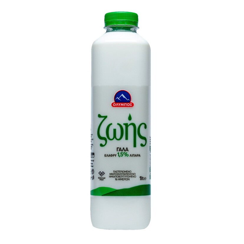 Γάλα ΟΛΥΜΠΟΣ ζωής υψηλής παστερίωσης ελαφρύ 1,5% λιπαρά (1lt)