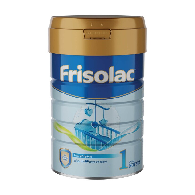 Το μητρικό γάλα είναι ό,τι καλύτερο για το μωρό σας. Το γάλα σε σκόνη Frisolac είναι γάλα 1ης βρεφικής ηλικίας και ενδείκνυται για βρέφη από τη γέννηση µέχρι τον 6ο µήνα, εφόσον δεν θηλάζουν. Είναι στιγµιαίας παρασκευής, µε νέα προηγµένη σύνθεση που καλύπτει τις ειδικές διατροφικές ανάγκες των βρεφών και παρέχει ποσοτικά και ποιοτικά τα απαραίτητα θρεπτικά συστατικά (βιταµίνες, ιχνοστοιχεία, λιπαρά οξέα κ.λπ.) για την υγιή ανάπτυξή τους. Επίσης περιέχει DHA όπως απαιτεί η Νέα Ευρωπαϊκή νομοθεσία για τα βρεφικά γάλατα.