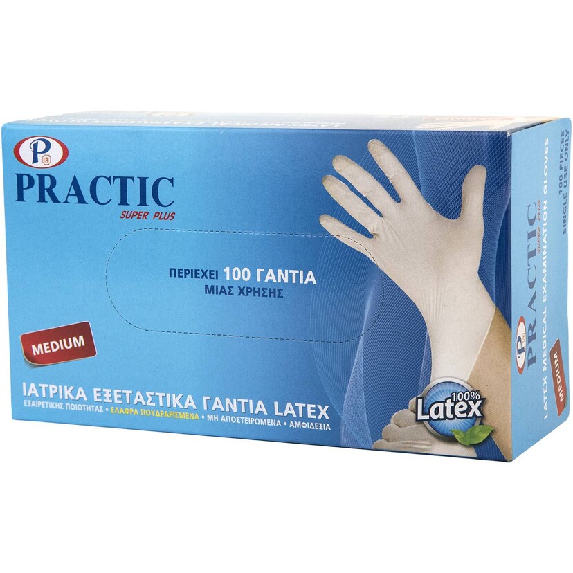 Γάντια Practic μίας χρήσης latex, medium (100τεμ.)