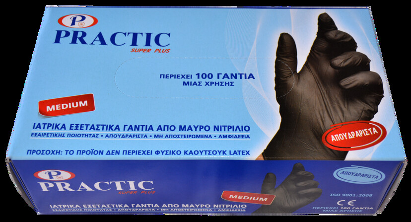 Γάντια PRACTIC μίας χρήσης νιτριλίου μαύρα, medium (100τεμ.)