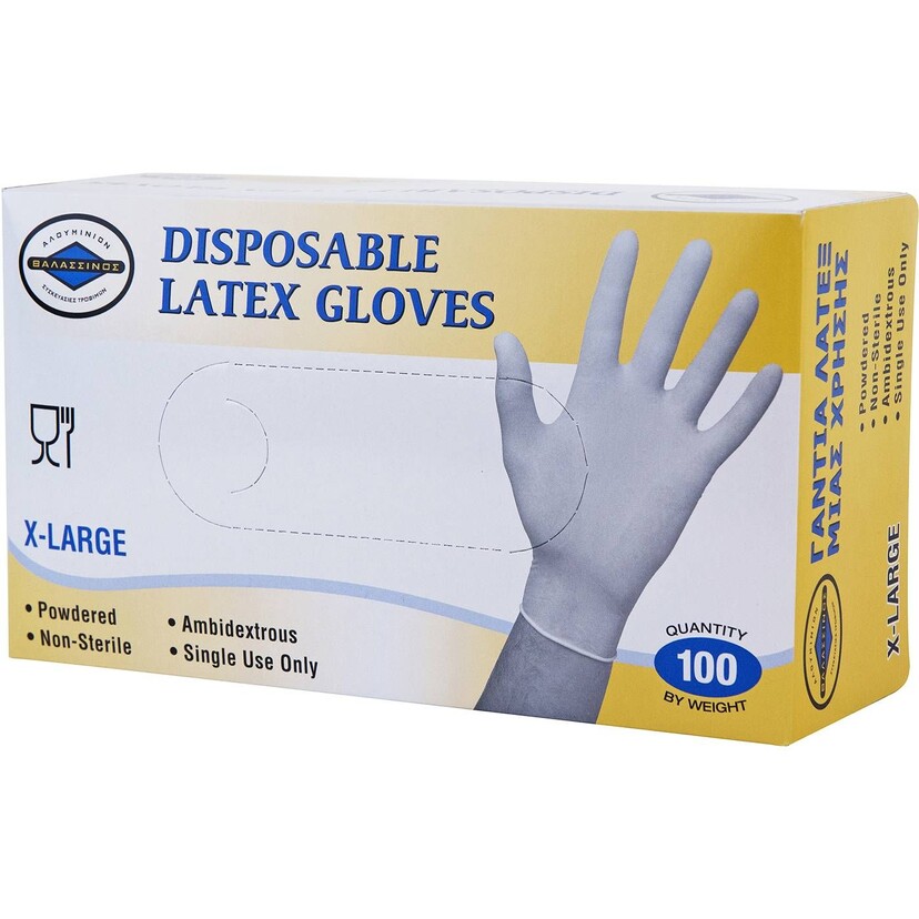 Γάντια ΘΑΛΑΣΣΙΝΟΣ μίας χρήσης latex, extra large (100τεμ.)
