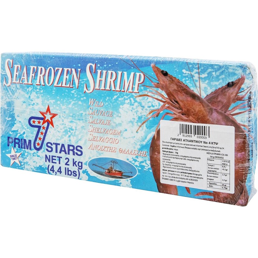 Γαρίδες Ατλαντικού (Penaeus notialis) Νο4 κατεψυγμένες, αλιευμένες με τράτες στον κεντροανατολικό Ατλαντικό Ωκεανό, στη ζώνη FAO αρ.34. Καθαρό βάρος 2kg. Κατάλληλες για επαγγελματική χρήση ή οικιακή κατανάλωση.
