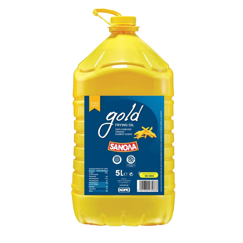 Το ηλιέλαιο SANOLA Gold αποτελεί αξιόπιστη επιλογή για καθημερινή και επαγγελματική χρήση στην κουζίνα. Διακρίνεται για τη σταθερότητά του στο τηγάνισμα και την ουδέτερη γεύση του, που δεν αλλοιώνει τα τρόφιμα. Είναι κατάλληλο για τηγάνισμα, μαγείρεμα και παρασκευές ζαχαροπλαστικής, προσφέροντας σταθερό και ποιοτικό αποτέλεσμα σε κάθε χρήση.