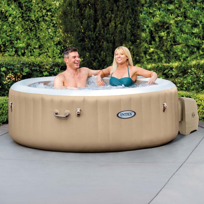 Το Intex PureSpa™ Bubble Massage Spa προσφέρει χαλάρωση με το πάτημα ενός κουμπιού. Ο εύχρηστος πίνακας ελέγχου ενεργοποιεί τους πίδακες φυσαλίδων υψηλής απόδοσης που περιβάλλουν το εσωτερικό του σπα για ένα αναζωογονητικό μασάζ. Το σύστημα θέρμανσης προσαρμόζεται για να ταιριάζει στις προσωπικές σας προτιμήσεις θερμοκρασίας, επιτρέποντας μια εμπειρία σπα χωρίς άγχος. Το ενσωματωμένο σύστημα επεξεργασίας σκληρού νερού κάνει το νερό πιο απαλό στο δέρμα για μια χαλαρωτική εμπειρία. Η κατασκευή Fiber-Tech και το ανθεκτικό στη διάτρηση τριπλό πολυστρωματικό υλικό παρέχουν την απόλυτη άνεση, υποστήριξη και ανθεκτικότητα. Το PureSpa™ Bubble Massage Spa παρέχει απλή συντήρηση με δύο εύκολα αντικαθιστώμενα δοχεία φίλτρου για διαρκή απόλαυση για έως και τέσσερα άτομα. Περιλαμβάνεται ένα μονωμένο κάλυμμα και κλειδαριά για την ελαχιστοποίηση της απώλειας θερμότητας και την παροχή πρόσθετου χαρακτηριστικού ασφαλείας. Παρέχεται τσάντα μεταφοράς για εύκολη αποθήκευση και μεταφορά. Περιλαμβάνεται σωλήνας φουσκώματος για εύκολο φούσκωμα.