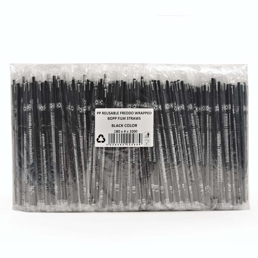 Καλαμάκια επαναχρησιμοποιούμενα MP/PP μαύρα ίσια 1/1 180x4cm 1000τεμ.