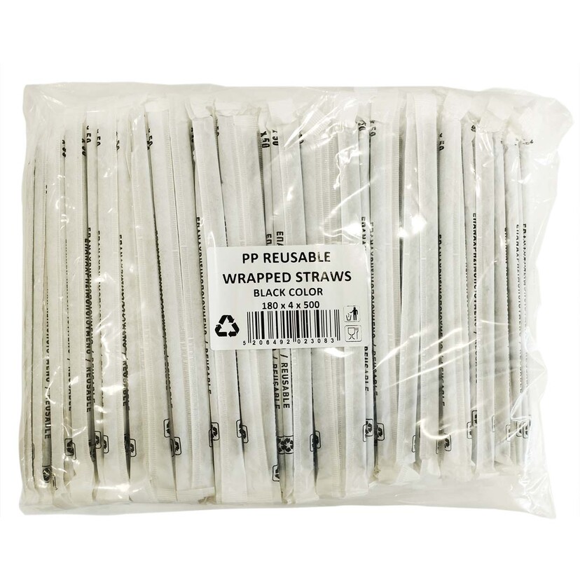 Καλαμάκια MP/PP επαναχρησιμοποιήσιμα μαύρα ίσια 1/1 180x4cm 500τεμ.