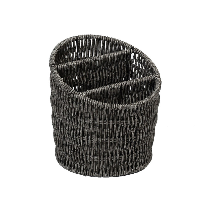 Ψάθινο καλάθι, σε μοντέρνο γκρι χρώμα, για τον μπουφέ και όχι μόνο. Κατασκευασμένο από συνθετικό rattan, ανθεκτικό και κατάλληλο για επαγγελματική χρήση, θα σάς εξυπηρετήσει για να σερβίρετε κάθε πιθανή λιχουδιά ή για τα μαχαιροπήρουνά σας, παρουσιάζοντάς τα με τον πιο ευφάνταστο αλλά και πρακτικό τρόπο.