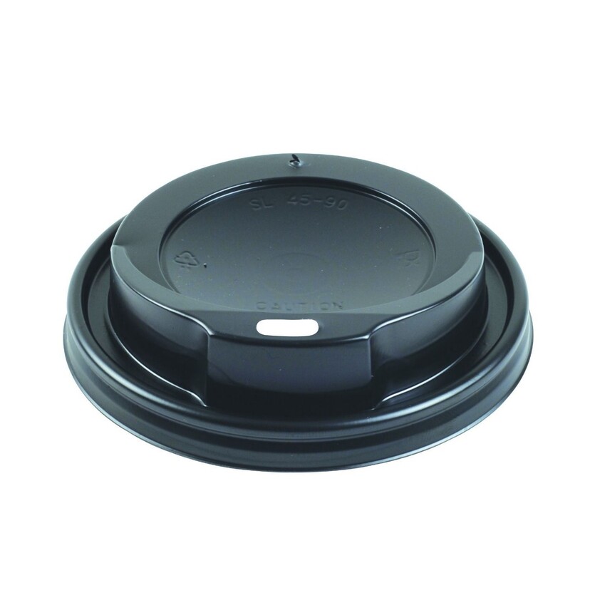 Καπάκια PS με τρύπα μαύρα για ποτήρια 4oz 100τεμ.