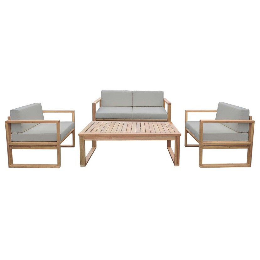 Καθιστικό κήπου σετ απο ξύλο ακακίας με γκρί μαξιλάρια