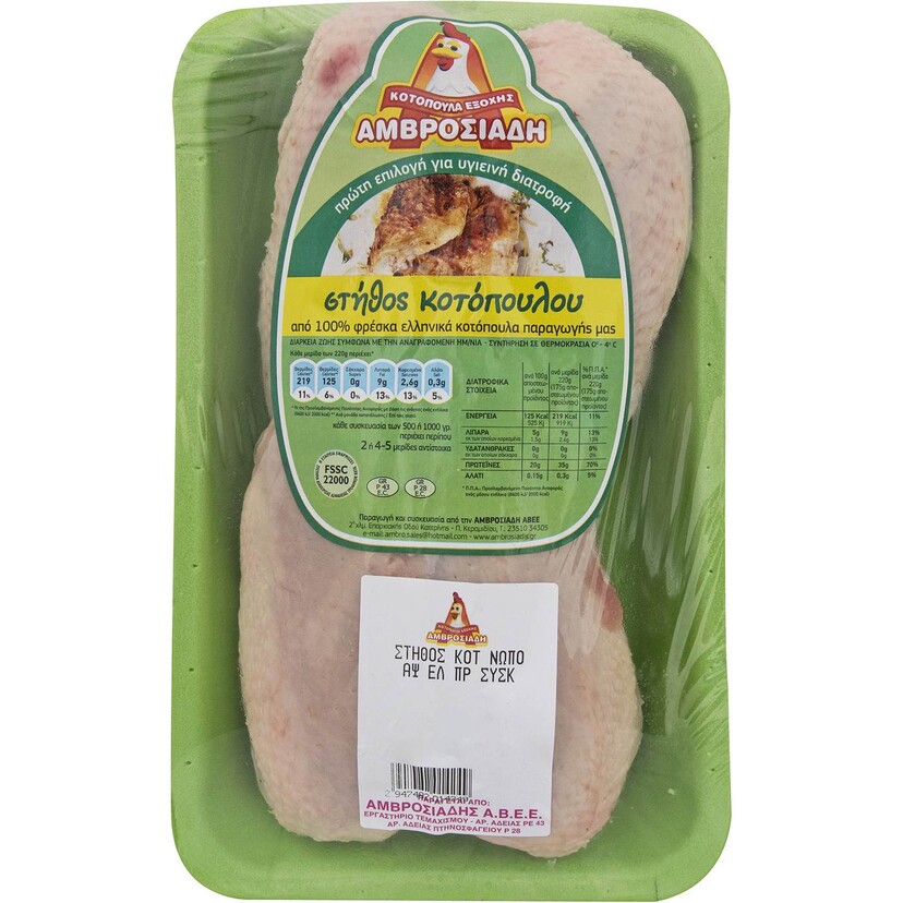 Κοτόπουλο ΑΜΒΡΟΣΙΑΔΗ στήθος με οστό νωπό σε δισκάκι εγχώριο (~1kg)