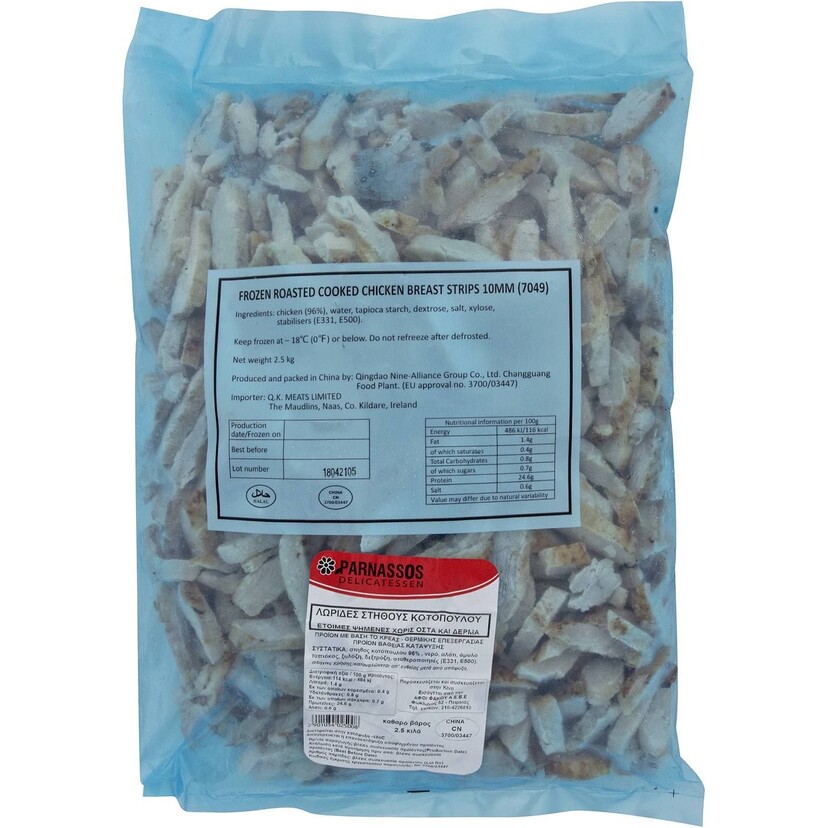 Κοτόπουλο ΠΑΡΝΑΣΣΟΣ στήθος σε λωρίδες ψημένες κατεψυγμένες (2,5kg)