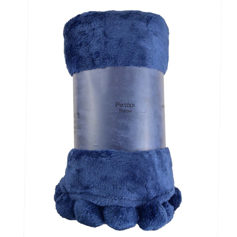 Κουβέρτα γούνινη με Pompom μπλέ