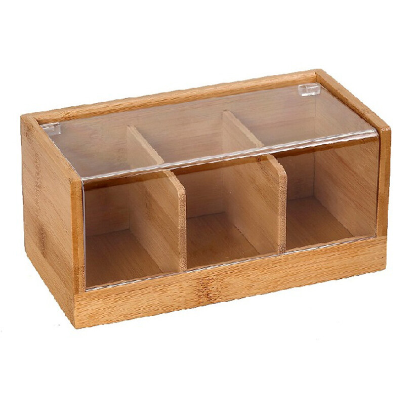 Κουτί 3 θέσεων bamboo με ακρυλικό καπάκι 22x13x10cm