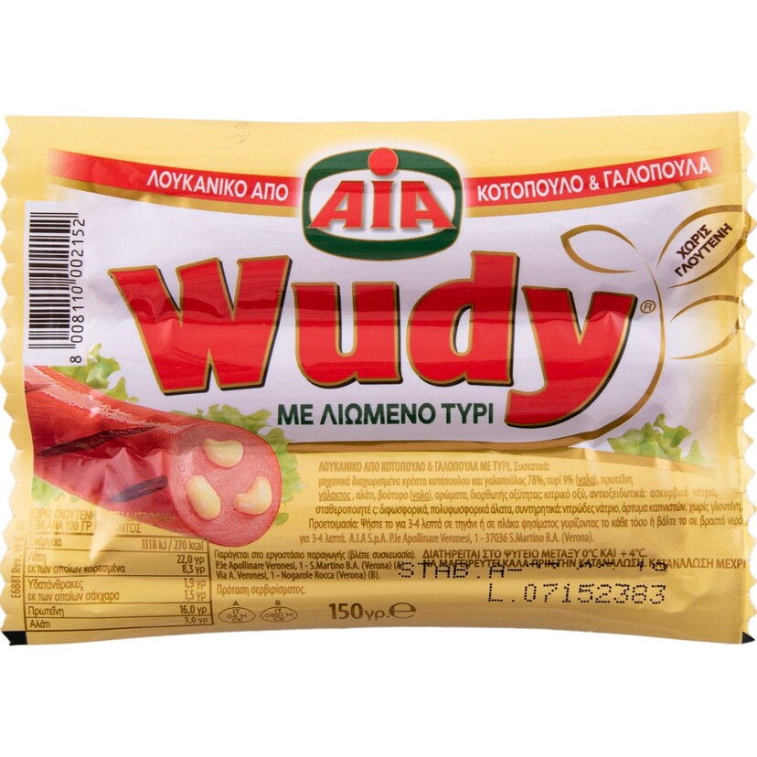 Λουκάνικα AIA Wudy κοτόπουλου και γαλοπούλας με τυρί (150g)