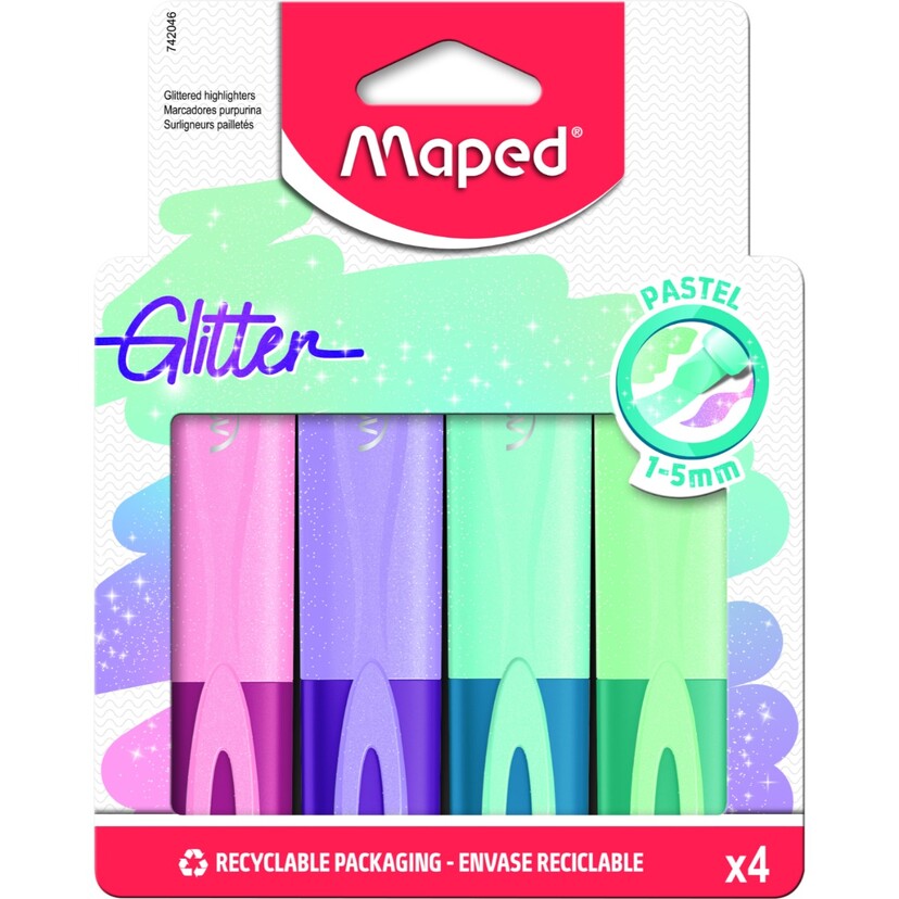 MAPED μαρκαδόρος υπογράμμισης Fluo Peps παστέλ χρώματα με γκλίτερ 4τεμ.