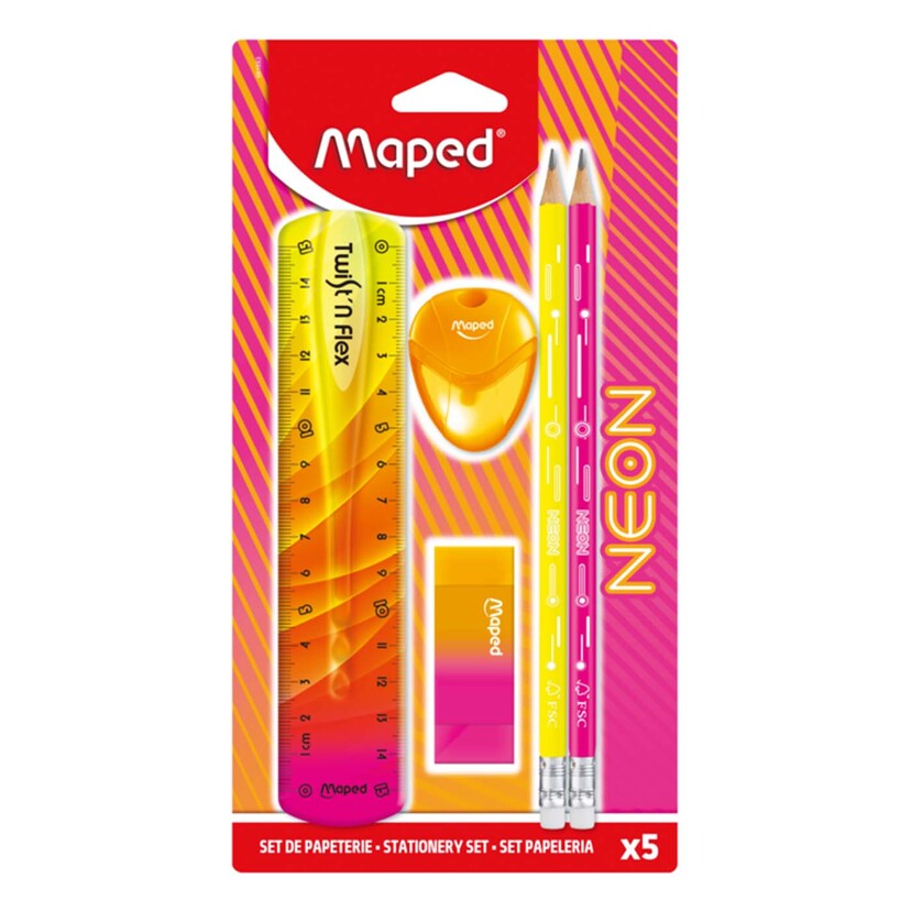 MAPED σετ Neon με γόμα, ξύστρα, μολύβι και χάρακα 5τεμ.