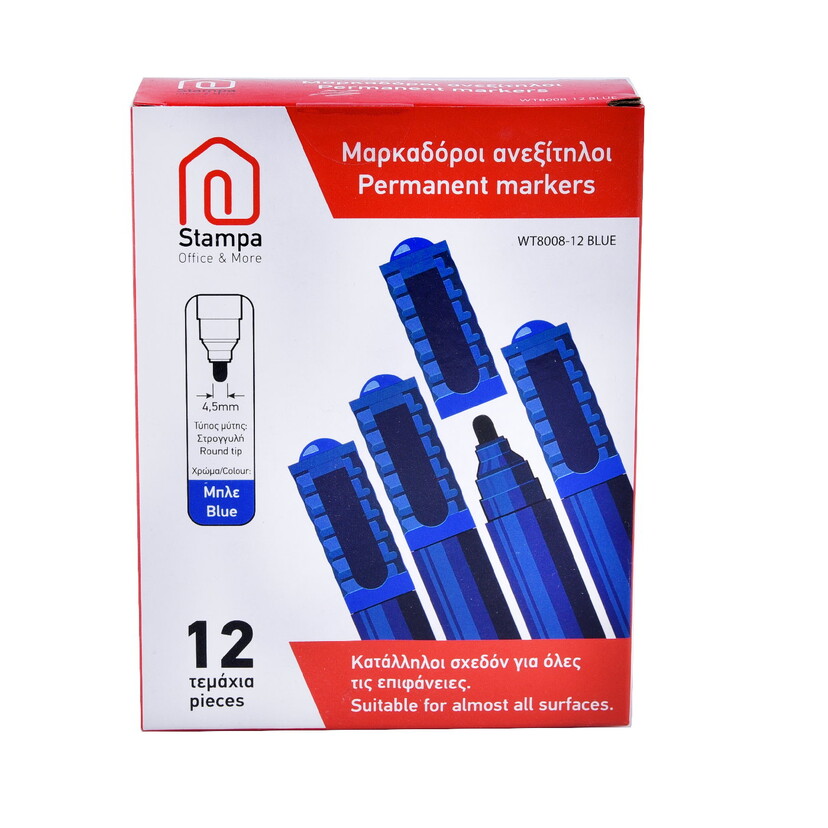 STAMPA μαρκαδόροι ανεξίτηλοι με στρογγυλή μύτη μπλε 12τεμ.