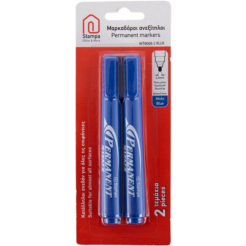 STAMPA μαρκαδόροι ανεξίτηλοι με στρογγυλή μύτη, μπλε 2τεμ.