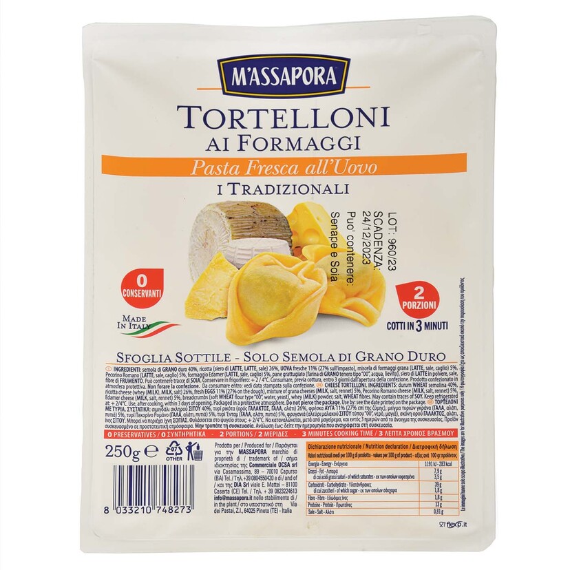 MASSAPORA φρέσκα ζυμαρικά τορτελίνι με τυρί 250g