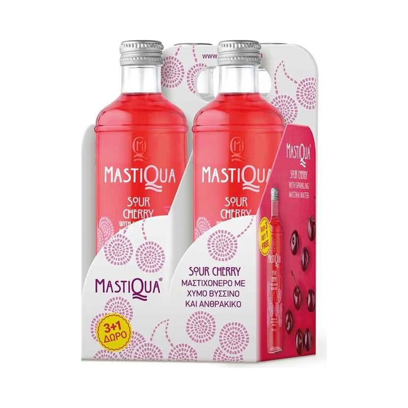 MASTIQUA ανθρακούχο νερό με χυμό βύσσινο και ανθρακικό 4x330ml 3+1 ΔΩΡΟ