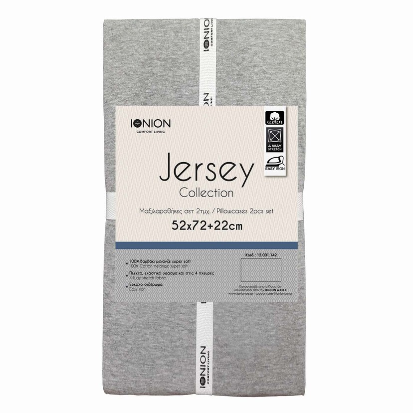 Μαξιλαροθήκες Jersey μελανζέ ανοιχτό γκρι 52x72+22cm