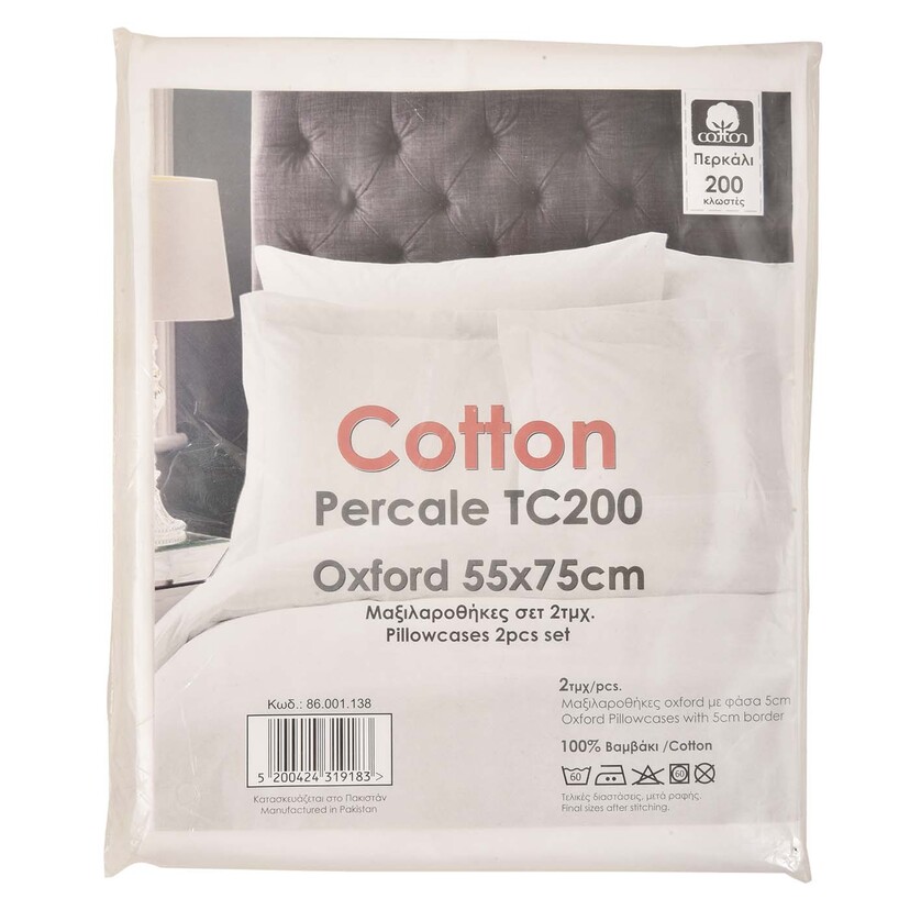 Μαξιλαροθήκη βαμβακερή περκαλί TC200 Oxford 55x75+18cm