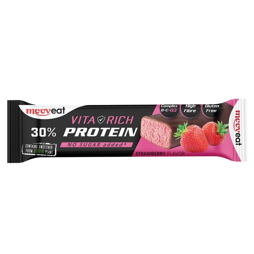 Η Vita Rich Protein bar της MOOVeat είναι γευστική μπάρα πρωτεΐνης με στέβια.