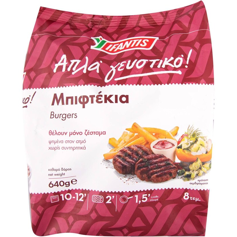 Μπιφτέκι IFANTIS απλά γευστικό κατεψυγμένο (8x80g)