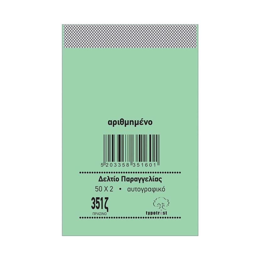 Μπλόκ Bar αρίθμηση 12x8cm διπλότυπο αυτογραφικό πράσινο 10τεμ.