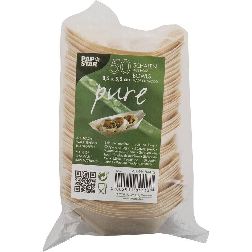 Μπολ βαρκάκια ξύλινα PURE 8,5x5,5cm (50τεμ.)