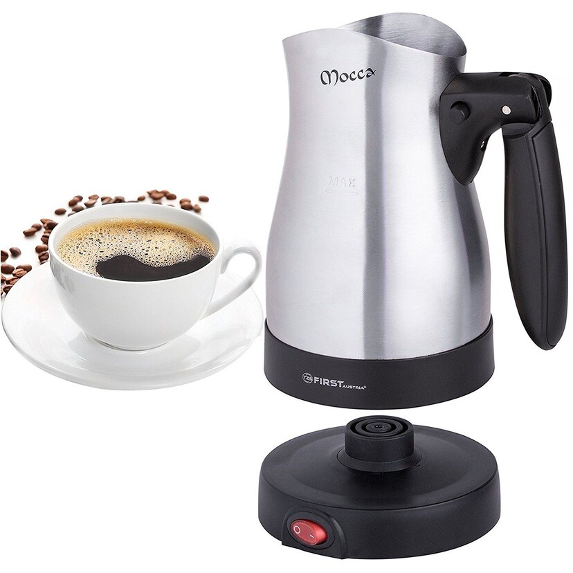 FIRST AUSTRIA μπρίκι inox 800W FIRST AUSTRIA μπρίκι inox 800W First Austria FA-5450-5 Ηλεκτρικό Μπρίκι με αναδιπλούμενο χερούλι 270ml 800w 360° Κανάτα (βραστήρας) Αποσπάται από τη βάση Περιστροφή 360 μοίρες Εξωτερικό περίβλημα από ανοξείδωτο ατσάλι Χρώμα: μαύρο Διαστάσεις: 13,5 x 16,5 x 21 cm Βάρος: 0,65 kg Ισχύς: 800 Watt Δεξαμενή νερού: 0,35 L Με αναδιπλούμενη λαβή Διακόπτης ενεργοποίησης/απενεργοποίησης με ενδεικτική λυχνία Διαστάσεις: 14x13x19.4