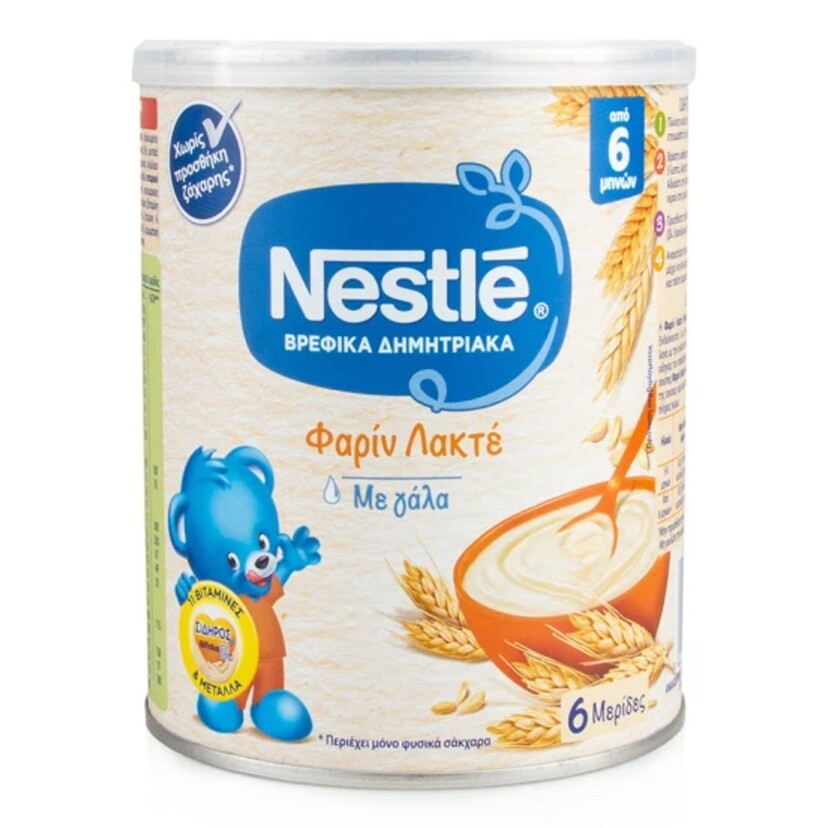 Τα Βρεφικά Δημητριακά Φαρίν Λακτέ με Γάλα της Nestlé διαθέτουν μοναδική σύνθεση που προάγουν την εγκεφαλική και γνωσιακή ανάπτυξη του παιδιού και μειώνουν την πιθανότητα εμφάνισης ανεπάρκειας σιδήρου και σιδηροπενικής αναιμίας.