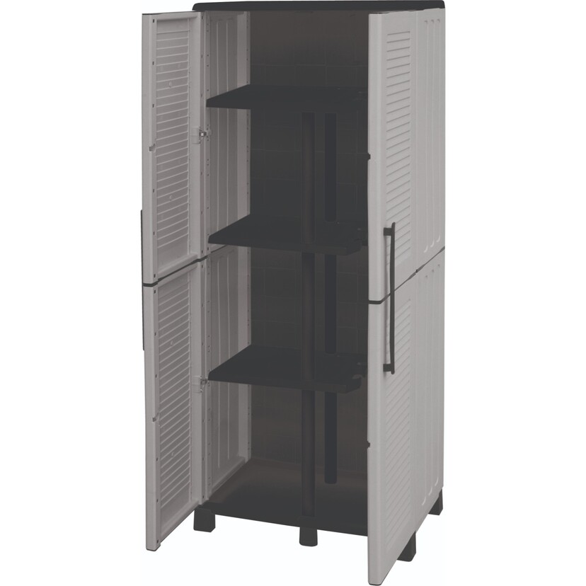 Επιπλέον υπάρχει χώρισμα και έτσι μπορείτε να αποθηκεύετε σφουγγαρίστρα ή σκούπα. Διαθέτει 2 ανοιγόμενες πόρτες οι οποίες σας προσφέρουν πλήρη ορατότητα και πρόσβαση στο εσωτερικό της ντουλάπας.