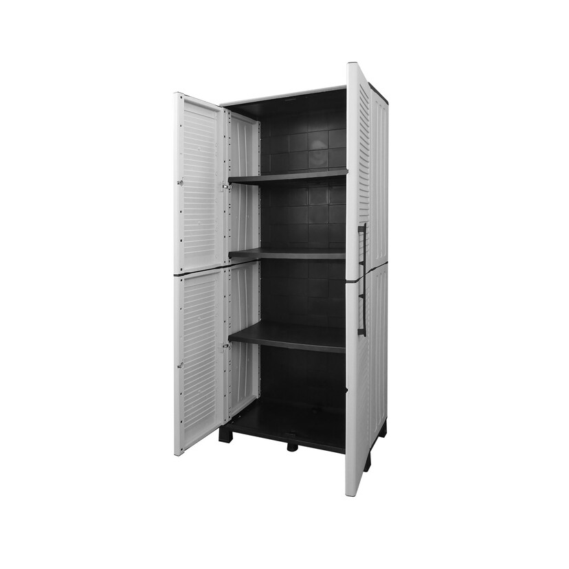 Πλαστική ντουλάπα δίφυλλη, κατασκευασμένη από πολυπροπυλένιο, ένα υλικό ανακυκλώσιμο, φιλικό προς το περιβάλλον και ανθεκτικό στην υπεριώδη ακτινοβολία UV, στις οσμές και στην υγρασία (δεν χρειάζεται ιδιαίτερη φροντίδα και συντήρηση). Πλαστική ντουλάπα δίφυλλη, κατασκευασμένη από πολυπροπυλένιο, ένα υλικό ανακυκλώσιμο, φιλικό προς το περιβάλλον και ανθεκτικό στην υπεριώδη ακτινοβολία UV, στις οσμές και στην υγρασία (δεν χρειάζεται ιδιαίτερη φροντίδα και συντήρηση).