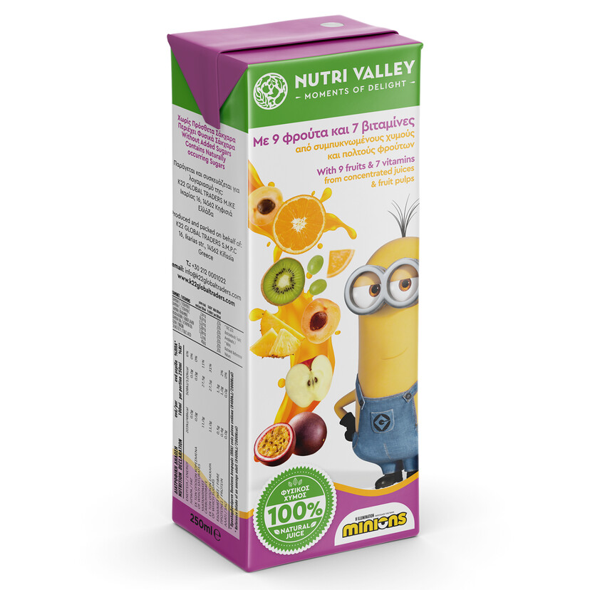 NUTRI VALLEY φυσικός χυμός Minions εξωτικός με 9 φρούτα 250ml