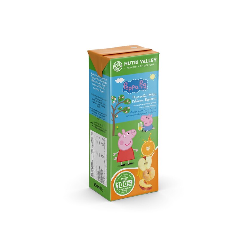 NUTRI VALLEY φυσικός χυμός Peppa Pig με μήλο/πορτοκάλι/βερίκοκο 250ml