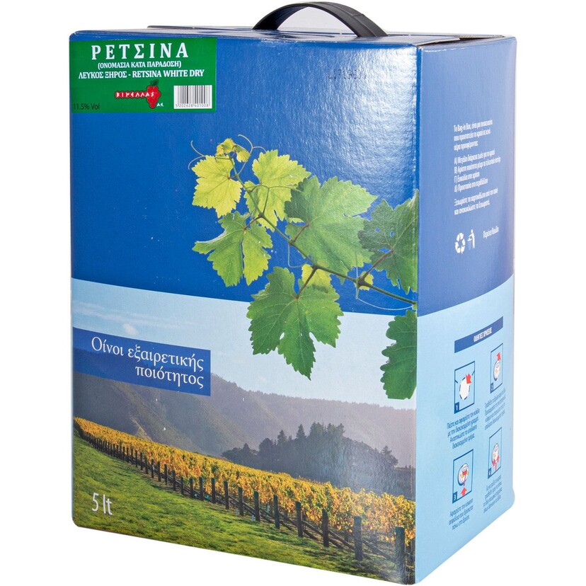 Οίνος λευκός ρετσίνα ΒΙΝΕΛΛΑΣ Ροδίτης Σαββατιανός ξηρός (5lt)