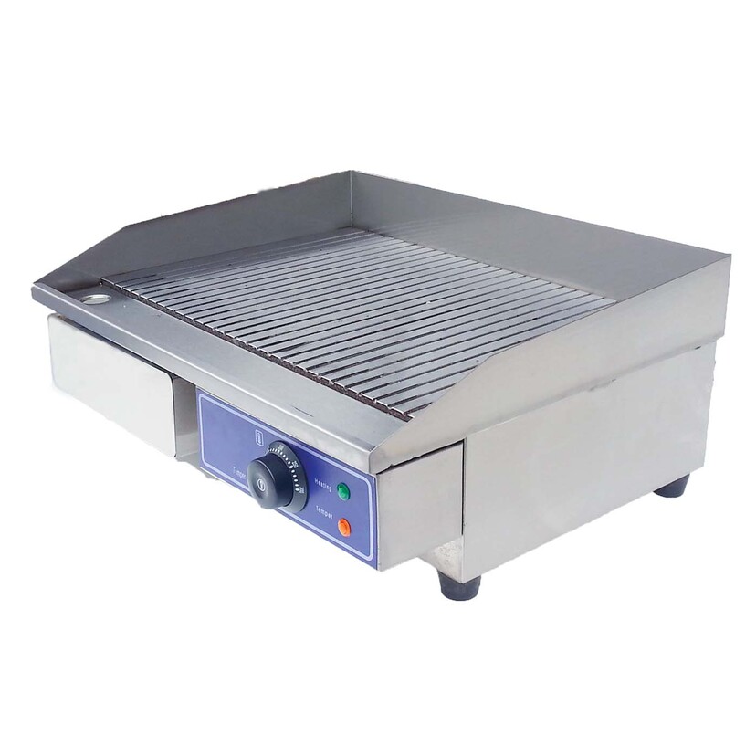OLYMPIA πλατό ραβδωτό Πλάκα από μαλακό χάλυβα, πάχους 10 mm Πανωσήκωμα Κατασκευή από ανοξείδωτο ατσάλι 201 Θερμοστάτης 50-300°C Ευρύχωρος συλλέκτης λαδιού από ανοξείδωτο χάλυβα με λαβή Διακόπτης από βακελίτη με θερμομόνωση Με μεγάλο άνοιγμα για αποστράγγιση Αντιστάσεις από ανοξείδωτο χάλυβα Αντιολισθητικά ποδαράκια από καουτσούκ Φωτεινές ενδείξεις θέρμανσης και λειτουργίας