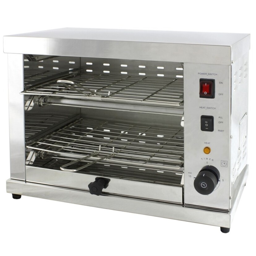 OLYMPIA σαλαμάνδρα 3.5kW Quartz σωλήνας με υπέρυθρες, που ζεσταίνεται άμεσα, με τη μέγιστη θερμοκρασία να επιτυγχάνεται σε 30 δευτερόλεπτα. Κατασκευή από ανοξείδωτο ατσάλι με γυαλιστερό φινίρισμα. Διακόπτης για επιλογή διαφορετικών ζωνών θέρμανσης. Προστατευτικό πλέγμα για τον quartz σωλήνα. Χρονοδιακόπτης 15 λεπτών με ειδοποίηση. Μόνωση στις τρεις πλευρές (επάνω, αριστερά, δεξιά). Συλλέκτης υπολειμμάτων από ανοξείδωτο ατσάλι με λαβή, που αφαιρείται για εύκολο καθάρισμα. Κρυώνει γρήγορα μόλις απενεργοποιηθεί. Αντιολισθητικά ποδαράκια. Διαθέτει 9 αντιστάσεις.