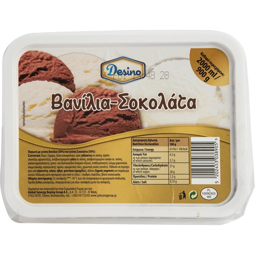 Παγωτό DESINO βανίλια σοκολάτα συσκευασία 2lt (900g)