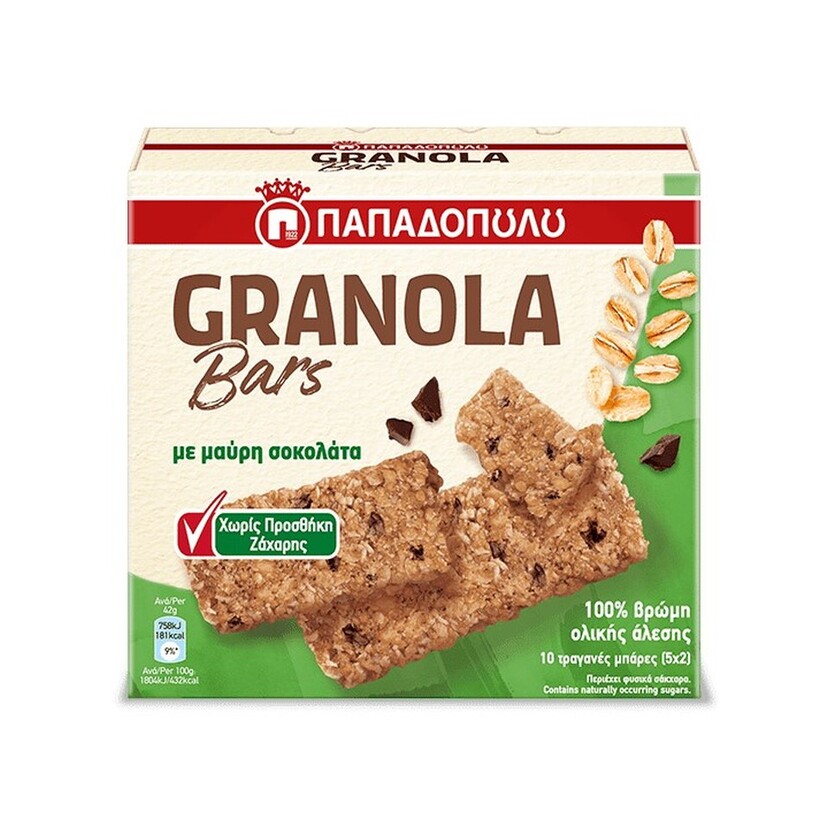 ΠΑΠΑΔΟΠΟΥΛΟΥ Granola Bars με σοκολάτα χωρίς ζάχαρη 5x42g