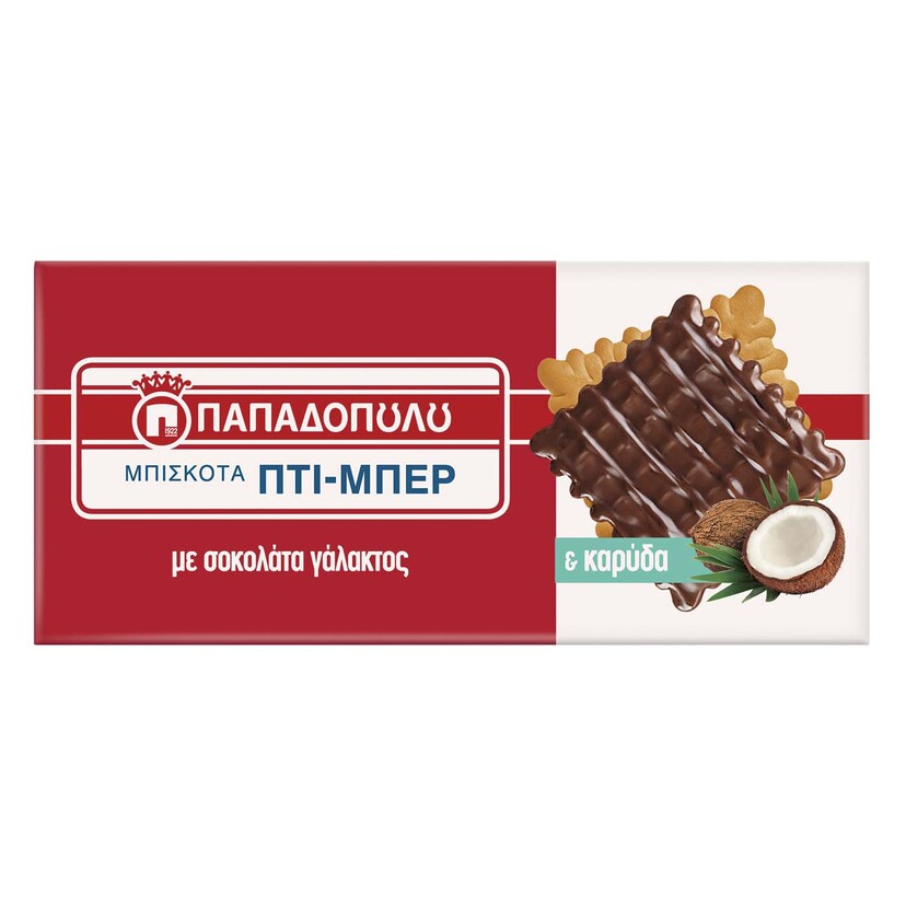 ΠΑΠΑΔΟΠΟΥΛΟΥ μπισκότα πτι-μπερ με σοκολάτα γάλακτος & καρύδα 200g