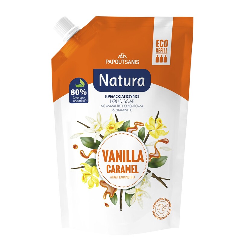 PAPOUTSANIS κρεμοσάπουνο ανταλλακτικό Natura με άρωμα βανίλια/καραμέλα 750ml