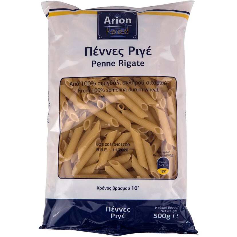 Πάστα ζυμαρικών ARION FOOD πέννες ριγέ (500g)