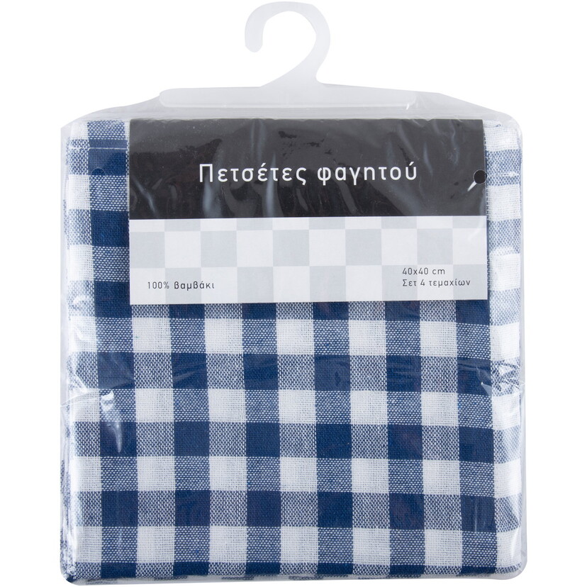 Πετσέτα φαγητού καρό μπλε 40x40cm (4τεμ.)