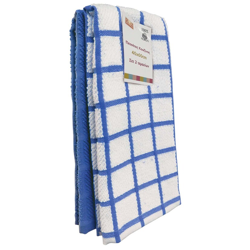 Πετσέτα κουζίνας καρό μπλε 40x60cm 2τεμ.