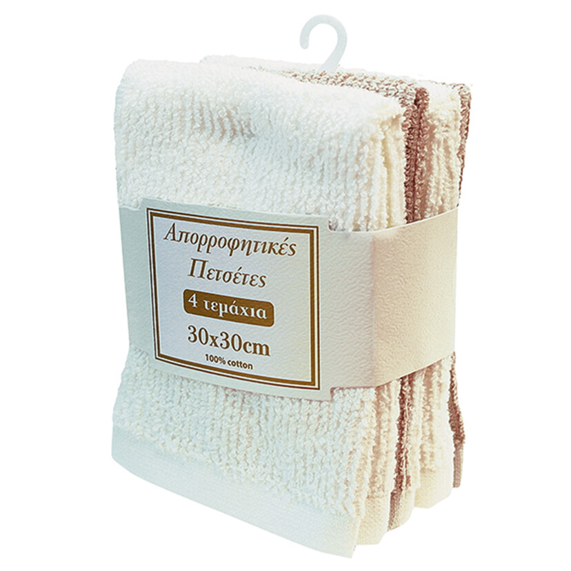 Πετσέτες κουζίνας 100% βαμβάκι σετ 4 τμχ 30x30cm καρό μπεζ-ιβουάρ