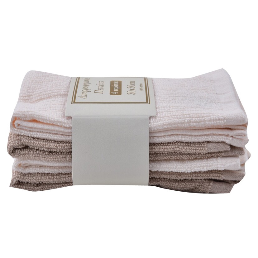 Πετσέτες κουζίνας ιβουάρ-μπεζ σετ 4 τεμ. 30x30cm