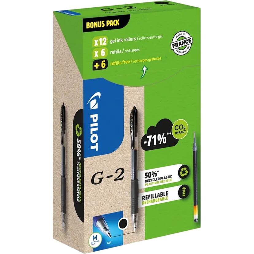 PILOT στυλό μαύρο G-2 0.7mm με ανταλλακτικό 12τεμ.+12τεμ.