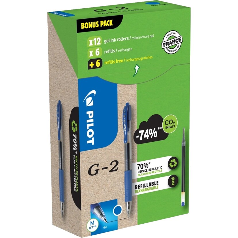 PILOT στυλό μπλέ G-2 0.7mm με ανταλλακτικό 12τεμ.+12τεμ.